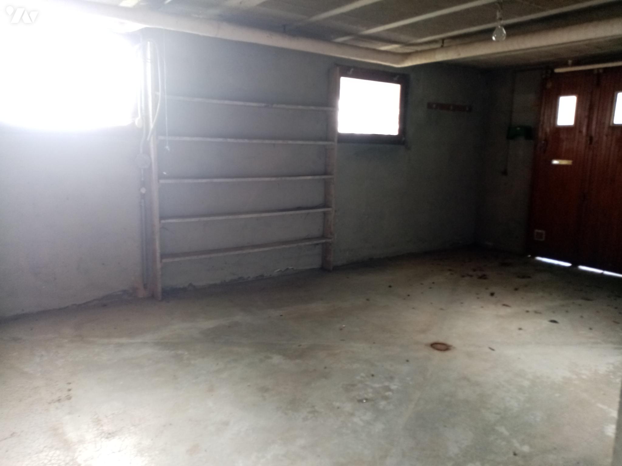 Rez-de-jardin : entrée, une chambre, buanderie/chaufferie, celliers, garage